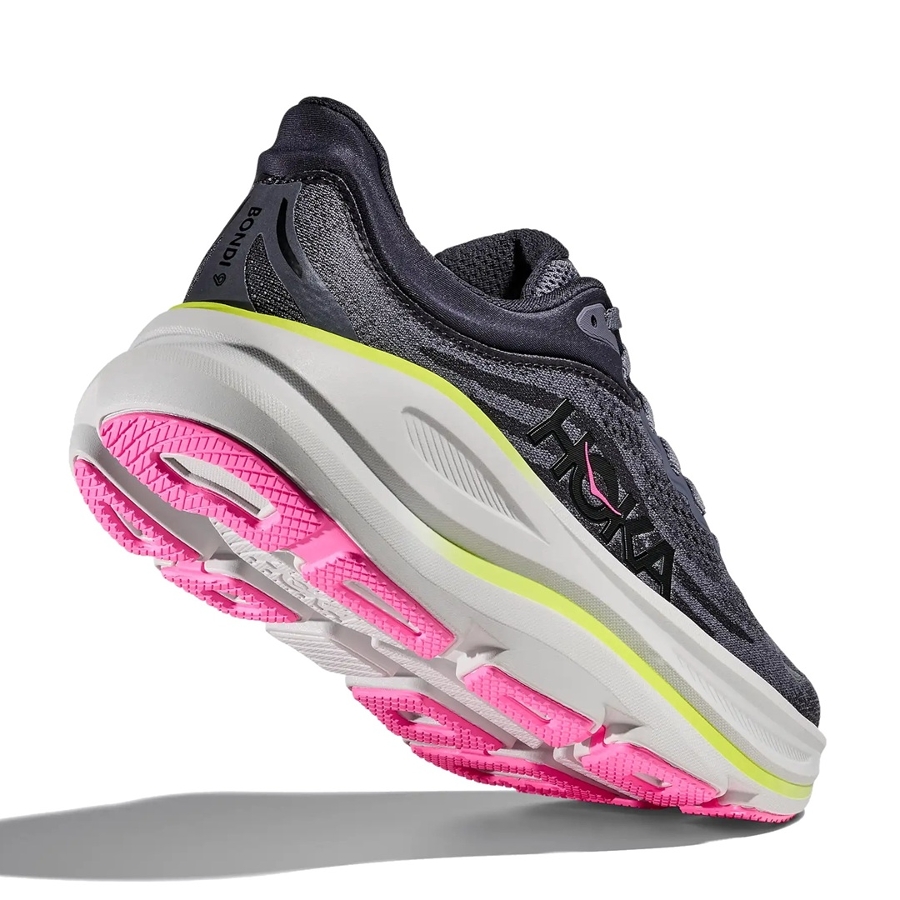 - One of the hardest working shoes in the HOKA lineup, the Bondi 9 delivers peak plushness for everyday miles. Overhauled from top to bottom, we"ve increased the stack height and added a new premium foam midsole to deliver that soft, resilient ride that"s become synonymous with the Bondi. Elevated with a 3D molded collar and structured knit upper with zonal breathability, this ultra-cushioned cult favorite has been finished with Durabrasion rubber to combat high wear zones.