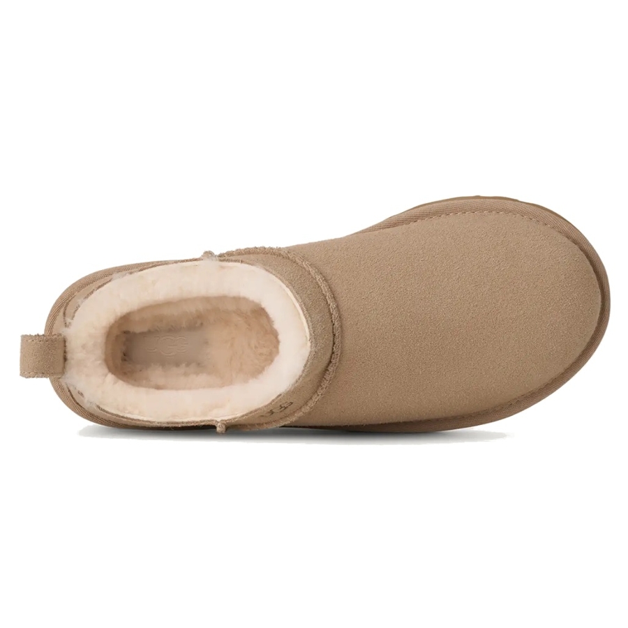 - Our Classic Micro reimagines our fan-favorite Classic Boot with a new, low-profile design (and high-profile comfort). It has a genuine suede upper lined with mega-soft sheepskin that naturally regulates temperature, so you can wear socks -- or not. The lightweight sugarcane EVA outsole delivers effortless support and adds that easy slipper feeling to every out-of-the-house venture.