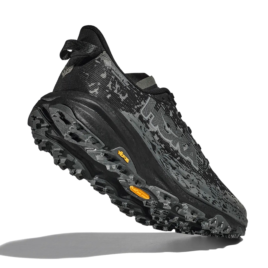 - The Speedgoat 6 GTX is now even more comfortable with GORE-TEX's Invisible Fit waterproof membrane for a lighter, more flexible construction to help avoid pressure points. Grounded in a Vibram" Megagrip with Traction Lug outsole for increased bite on loose soil, this trail icon employs a foot-cradling heel bolster, lightweight, responsive midsole compound, and a protective toe rand for charging through the rough stuff. Bring it, weather.