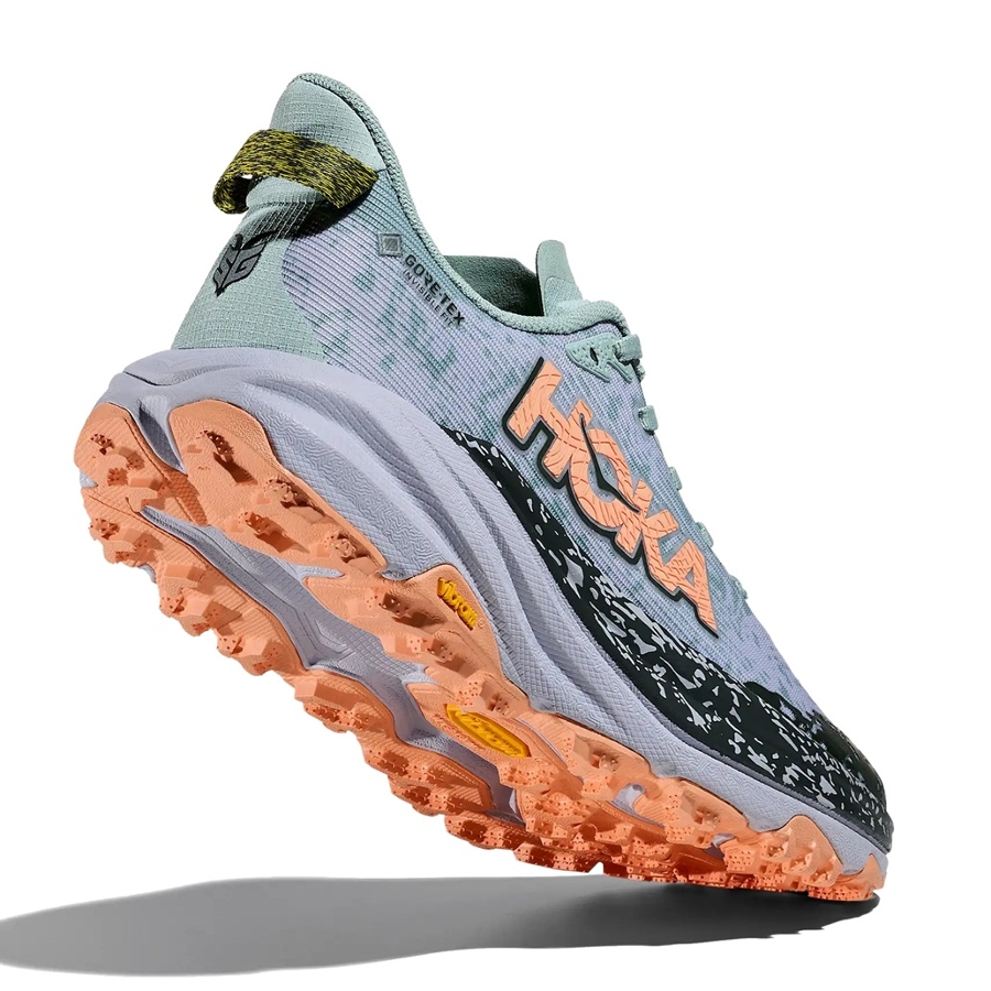 - The Speedgoat 6 GTX is now even more comfortable with GORE-TEX's Invisible Fit waterproof membrane for a lighter, more flexible construction to help avoid pressure points. Grounded in a Vibram Megagrip with Traction Lug outsole for increased bite on loose soil, this trail icon employs a foot-cradling heel bolster, lightweight, responsive midsole compound, and a protective toe rand for charging through the rough stuff. Bring it, weather.